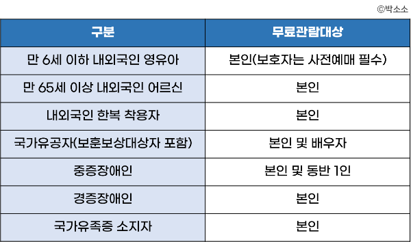 - 무료 관람대상자는 예매 불필요(관련등록증, 신분증, 여권 등 반드시 지참)